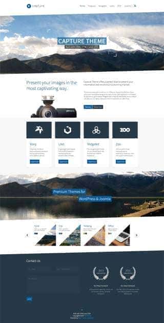 Check out Capture, our October 2013 theme release! It comes with a clean widescreen design, which is topped by a bright two color scheme. Its versatileness makes it perfect for any kind of web site creation, from business websites to photo blogs. This theme comes with a whole bunch of features. Capture the attention of your visitors with big parallax backgrounds, slants, which you can add to different module positions and an opening sequence animation that will give your website a unique look and feel. On top that you get a modern Widgetkit Bonus Style for the Slideset.