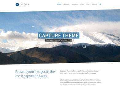Built on Warp7 and UIkit Capture provides full support for LESS. You can easily create your very own style with just a few clicks in the Customizer and change colors, spacing and fonts without having to write a single line of code. To get you started, Capture already provides 8 different style variations to choose from.