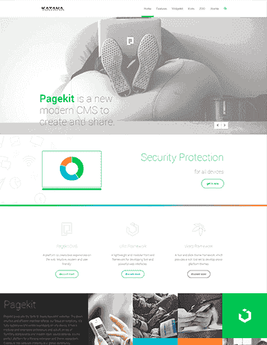 Katana provides a cool tile grid where you can organize your content in seperate tiles and set optional overlay effects and background images. The Widgetkit Bonusstyle Slideshow provides also the fullscreen and fullwidth option and supports background images and videos. With the Chart addon you can render information in modern and vivid way. You can choose between three different Chart styles and add your custom color to it. On top of all these features you get of course the sticky navbar option and a special blog layout.