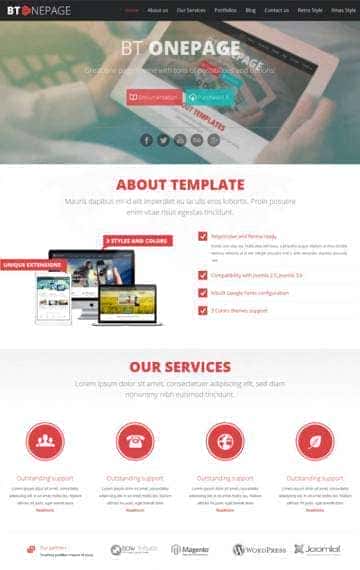 BT One page is a fully responsive, single-page Joomla Template with 3 polished interfaces: Corporate, Retro and Christmas styles. Editing the content is easy with the use of BT Portfolio component and another unique extensions from Bowthemes.
