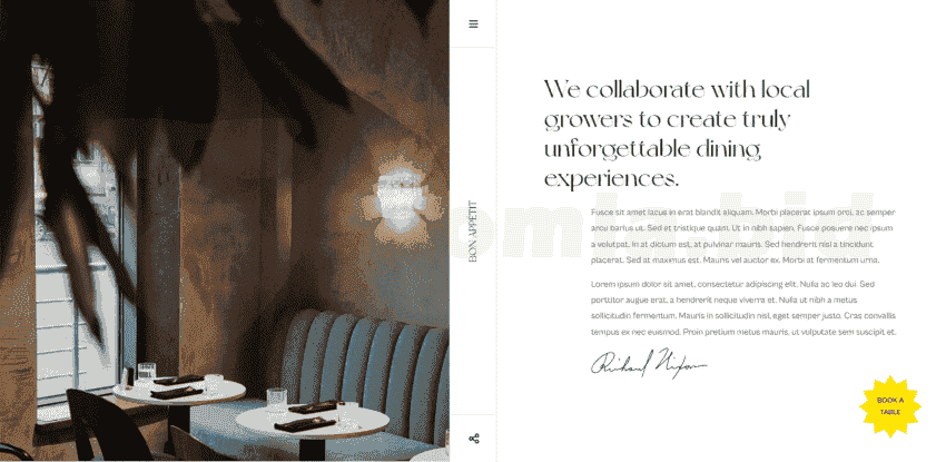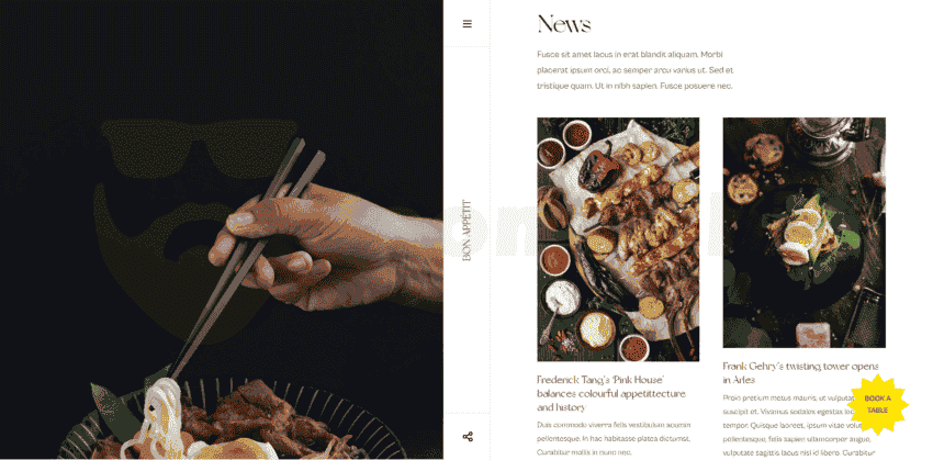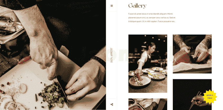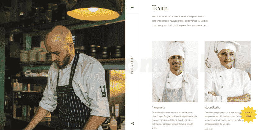 Shows your restaurant chefs in a clean and professional page. Each chef has its own detail page to show more information.