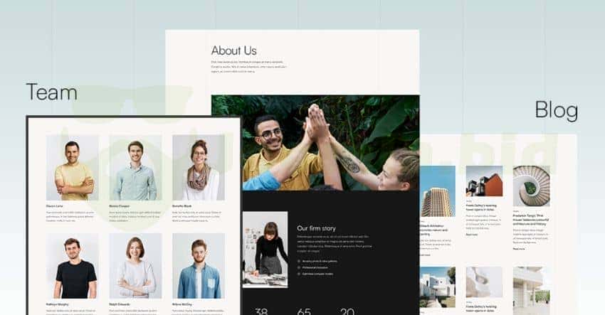 The Joomla template includes multiple beautiful ready-to-use pages to help you build a complete website without coding or using 3rd party extensions: About, Team, Blog, Contact.