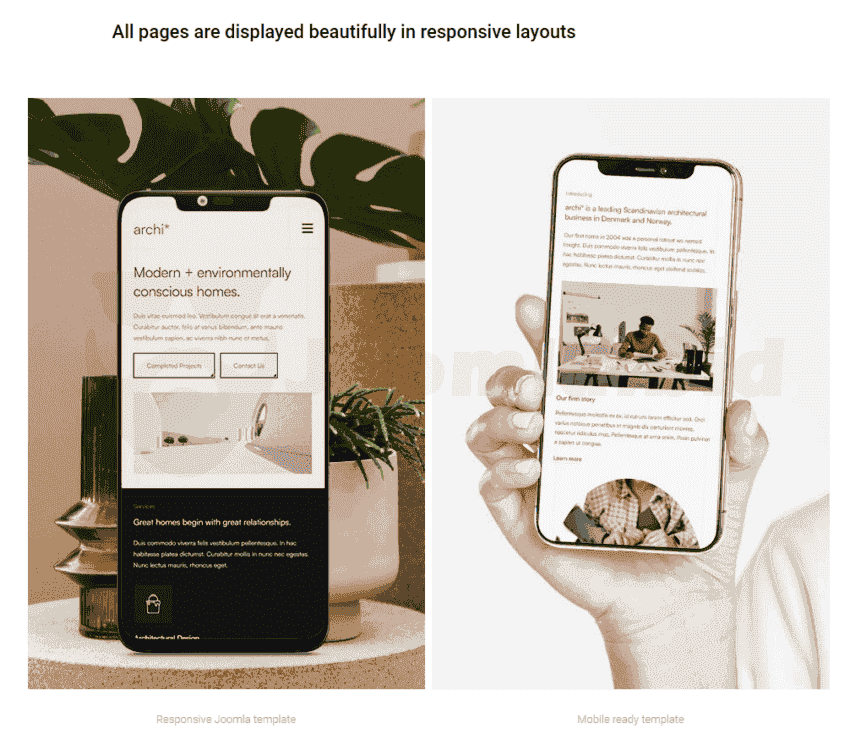 Archi Joomla template responds elegantly to various screen sizes and has been tested to work across devices, from the largest of desktops to modern smartphones.