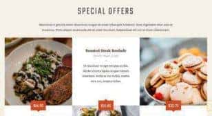 The pre-built page helps you create Offers page for your Restaurant with Special Offers, Newsletter promotion or Happy Hours program.