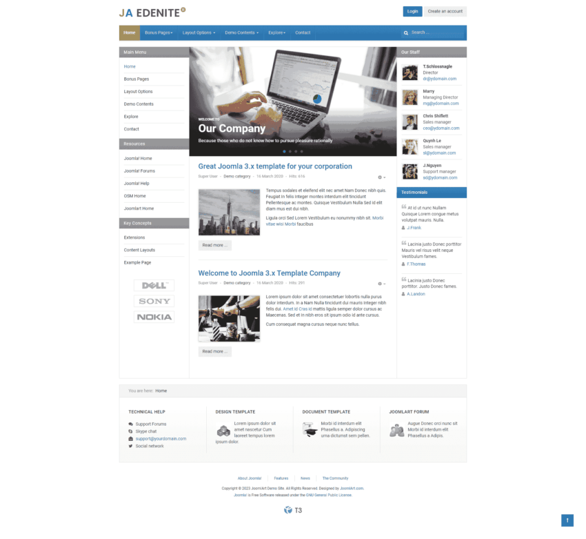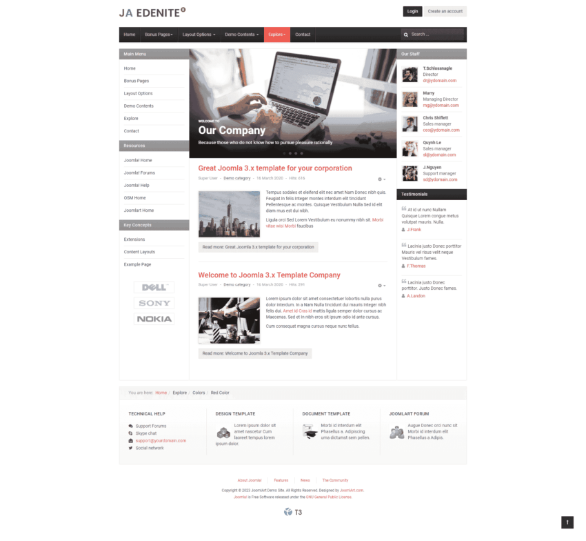 JA Edenite II is upgraded improved version of our Popular JA Edenite template for corporate and business Joomla sites. Now Edenite II runs on the latest T3 framework and also brings in few bonus pages. The template also supports all default Joomla pages with customized style to fit the template design.