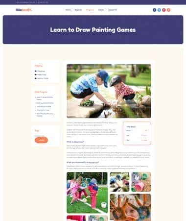 Beside pre-built pages for events, programs, about us, the Kids center Joomla template also supports all Joomla default pages with customized to fit the template design: Blog, Tag page, Contact, 404, Offline, Search, etc to save time in setup a full website.