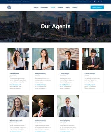 Each Agent has its own details page with Agent info: image, description, contact info, social info and their created properties list. User can quickly view all properties of an agent.