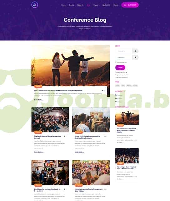 Create a beautiful blog page for your event website using the inbuilt Joomla blog with customized style and flexible layouts