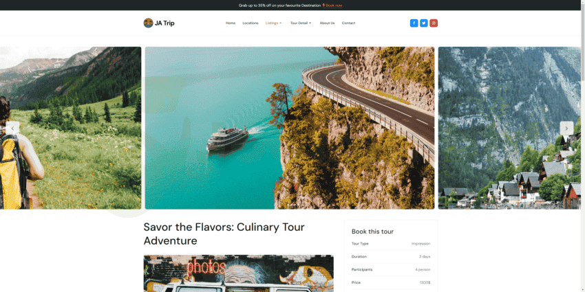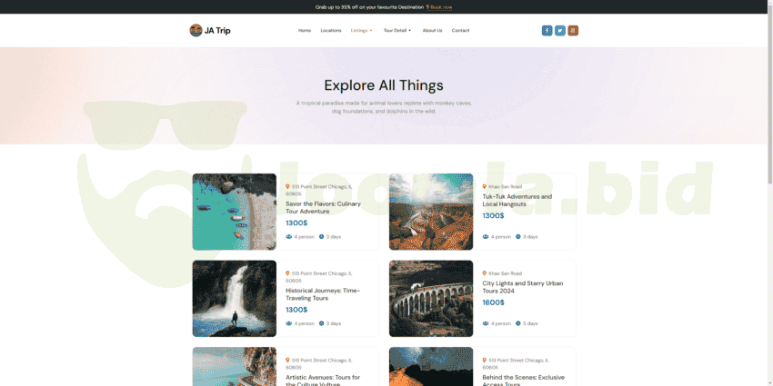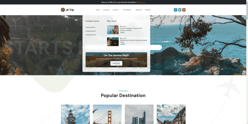 With our Multi Tours Layouts, you can showcase a wide range of tours and packages. From adventure trips to cultural excursions, JA Trip provides customizable layouts to suit every type of travel experience.