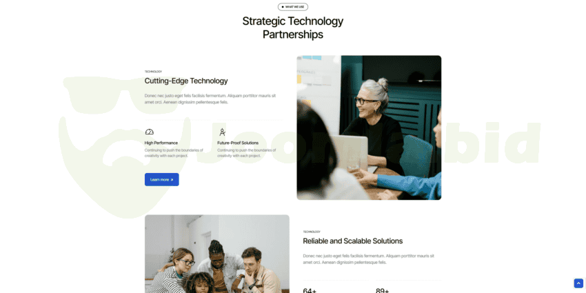 Highlight your services with the Service Layout. This feature allows you to present what your company offers in a clear and attractive way, with sections for detailed descriptions, images, and key benefits. Make it easy for potential clients to see the value you provide.