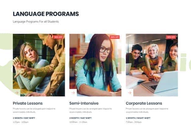 Offer different language courses and ask interested visitors to get admitted by showcasing specialities, experience, and stats. Present some important reasons to get admitted to the language school you.