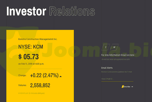 Konstra covers both the stockholders & stakeholders. For the construction companies that use raised funds from investors and share market(s), an investor relations page is a must on their website. There is another readymade page for stakeholders, that’s for the subcontractors.