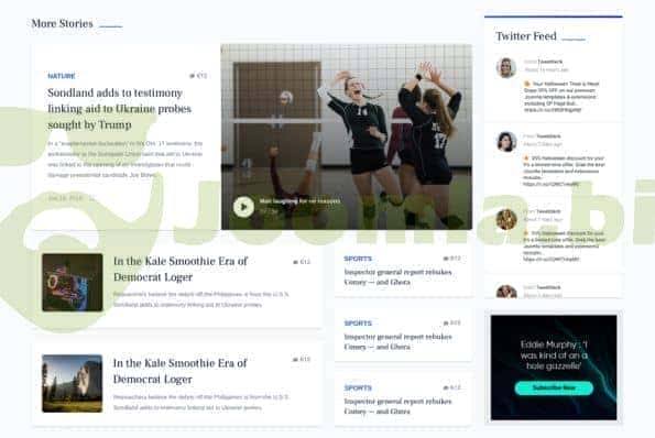 Thumb Slider: Newsberg gives you the most elegant vertical news slider ever. With Thumb Slider addon, the template fetches articles and display them vertically.