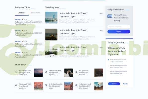 Present all the core news segments at the top viewport Featured stories can be placed anywhere as you wish Showcase videos and audios from multiple sources Have a poll module, newsletter subscription form & more