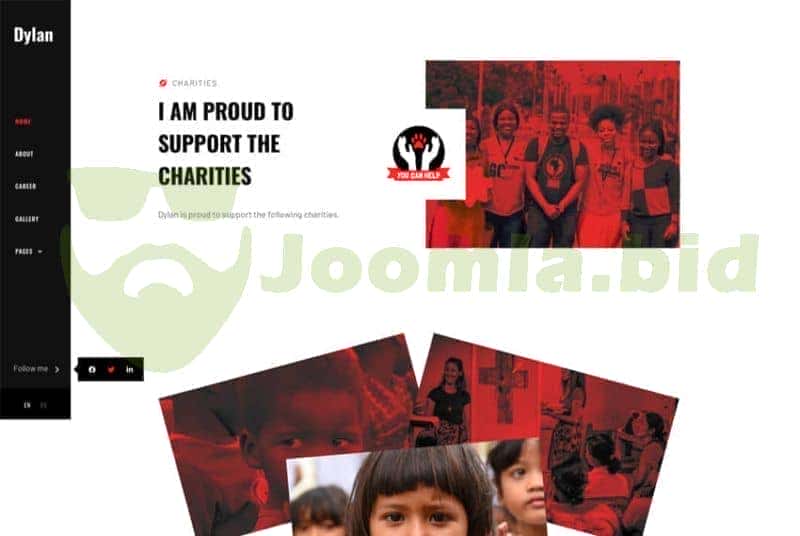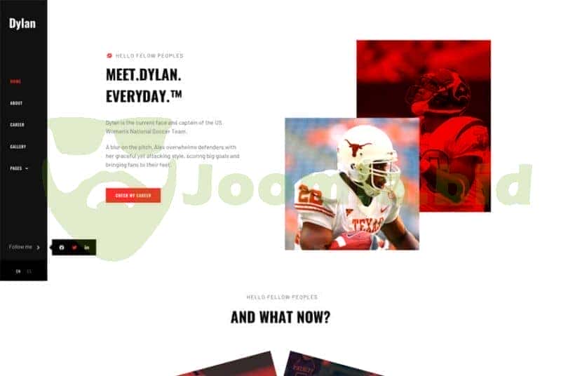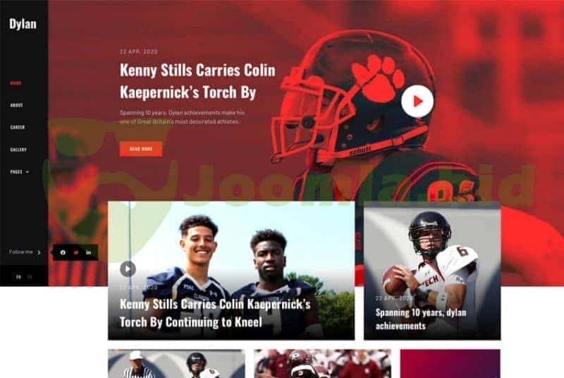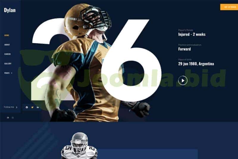 Dylan is an athlete portfolio Joomla template for all kinds of sportsmen including rugby player, footballer, cricketer, and tennis star. With 2 home variations, 2 header designs, and awe-striking pages, Dylan is a complete website package for sportsmen of all categories. Athletes can showcase their experience, training, photos, and more.