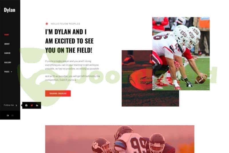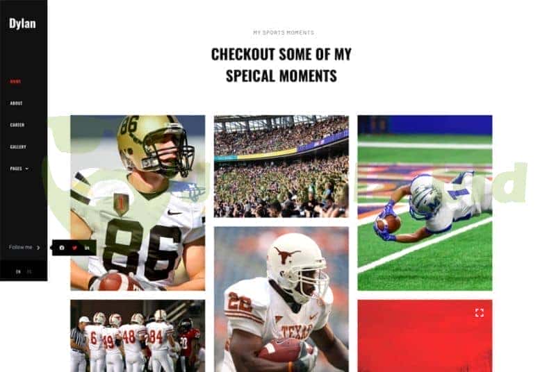 Dylan is more like an athlete portfolio website template. This is why it offers a dedicated about page that represents the athlete with all important details. Showcase the sportsman's description, specialities, and more in different sections to attract visitors in the right way.