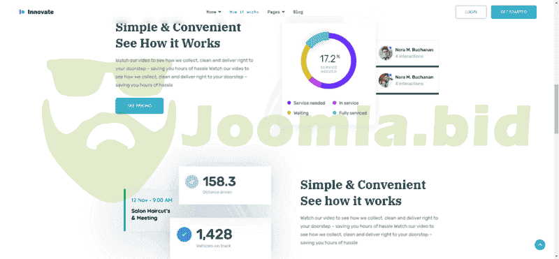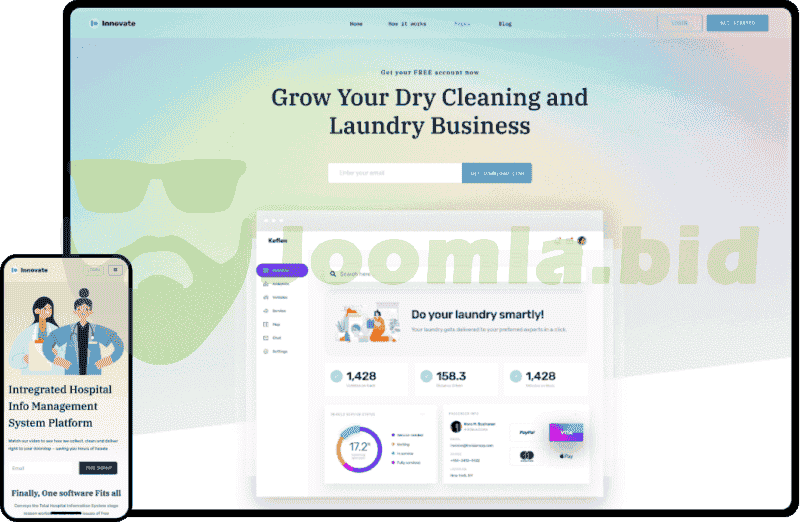 Innovate is a technology Joomla template best suited for small and medium-sized businesses. It can be used by SaaS developers, digital product vendors, software developers, medical app makers, as well as dry cleaning and laundry businesses.