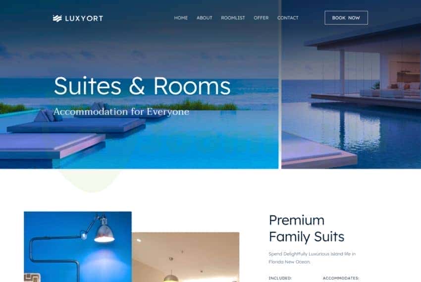 Let your audience paint a picture of more than sightseeing. From indoor space to outdoor activities, the Luxyort template comes fully equipped to present to your visitors what activities they can engage in during the stay.