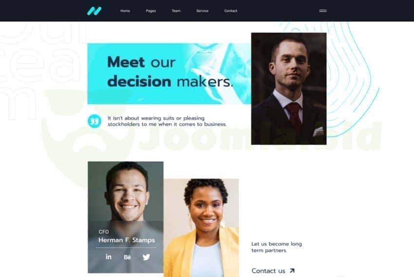 Magnin has been designed with absolute diligence keeping in mind the users' focus point, requirement, and convenience. The eye-catching light & dark mode adds up to the extra option you might want to grab for your website’s new look. Get multiple homepage variations, showcase praiseworthy projects with visuals, Team and career page to highlight the your company, and do much more with the Magnin Joomla template.