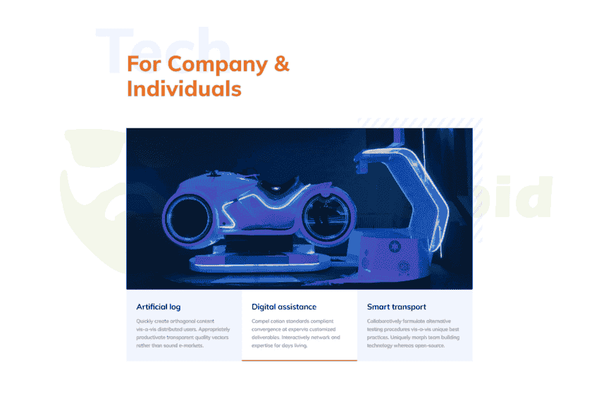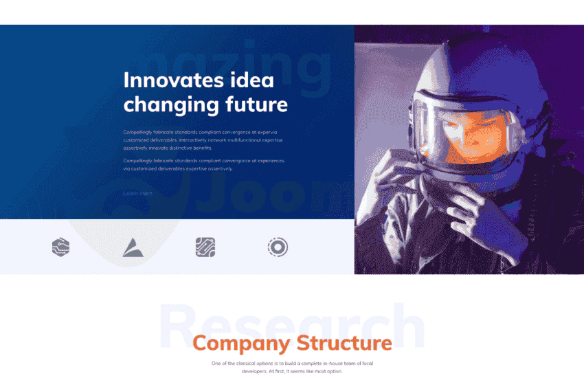 Get a gorgeously designed home page layout for your technology startups, medium and large-scale tech companies. Easily present your company with a stunning hero section and features and more.