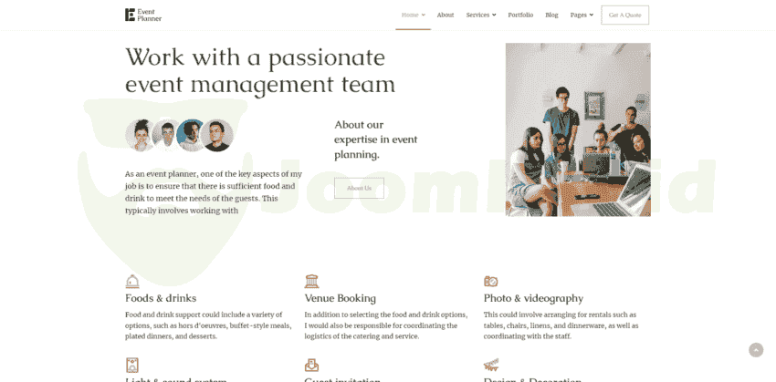 To multiply the magnificence of the Event Planner template, it has been fortified by the mighty SP Simple Portfolio to help you better create your portfolio functionality. Altogether, the Event Planner template is an all-in-one solution for your event planning website, offering everything you need to improve your chances of sealing deals better.