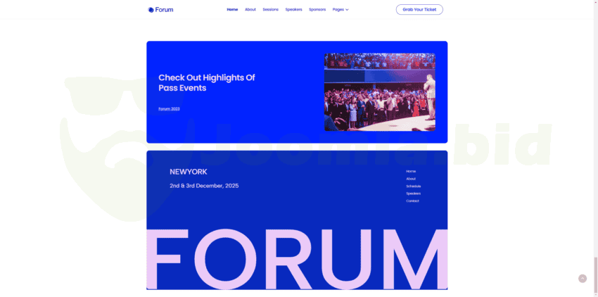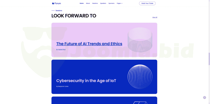 The Forum Joomla template is designed for conferences, events, meetings, seminars, concerts, and workshop-related websites. It combines a fresh, professional design with powerful features to help you create and schedule events effortlessly. Showcase event details, ticket pricing, speakers, and more with ease while engaging your audience through interactive elements.