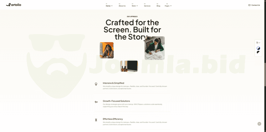 Meet Artolio - a versatile and modern Joomla template crafted for agencies, corporate businesses, and other professional services. With five distinct home page variations designed for various professions, it offers a one-stop solution for your creative businesses. Its sleek, contemporary design serves as the perfect platform to showcase your services, works, teams, and more, helping you build meaningful business connections.