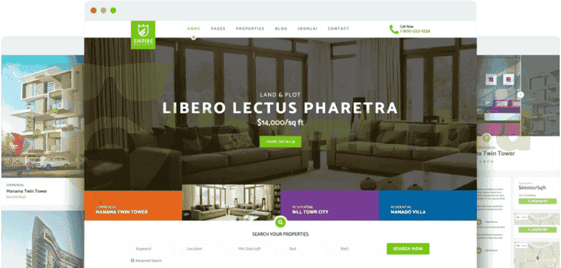 Empire is a fully responsive Joomla! 3.7+ template mostly for real estate, agencies, builders and other related businesses. This template can be used in marketing and sales activities of real estate projects, new developments, residentials, vacation and rental properties and much more. Empire has a new component SP Property with agents, properties, search filters and visit request options inside.