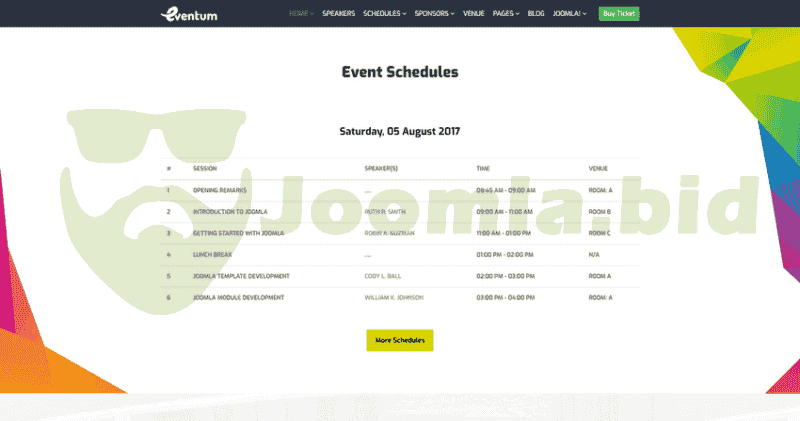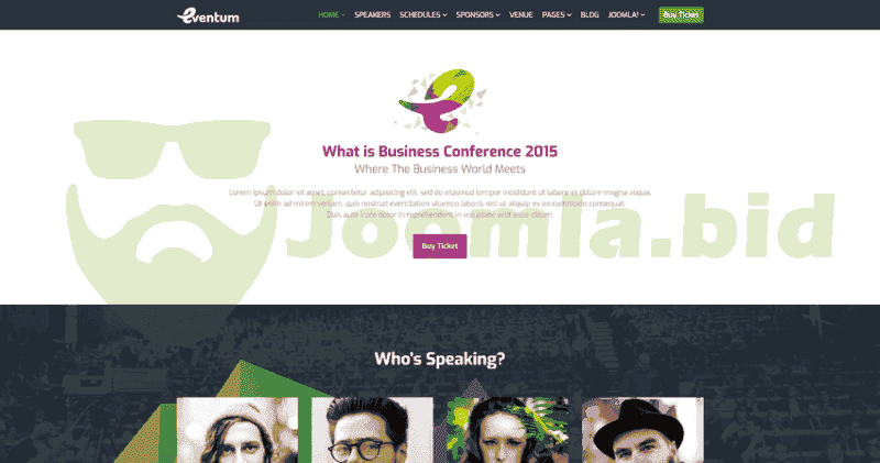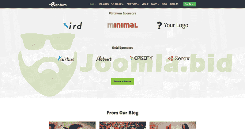 Planning an event? You need an event website? Yes, you found it. Eventum is a Joomla 3.8+ template designed for all kinds of conferences, congresses and events management. Business and hobby meetups becoming more and more popular. This template package allows you to run your own fully working event website in short period of time. It comes with event management features. You can manage your event’s speakers, sessions, venues, sponsors, maps and tickets as well. System allows to present (then sell) different type tickets for the same event. Individual event tickets can be integraded with Eventbrite links or any other e-commerce solution.