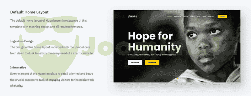Every element of the Hope template is detail oriented and bears the crucial expressive task of engaging visitors to the noble work of charity.