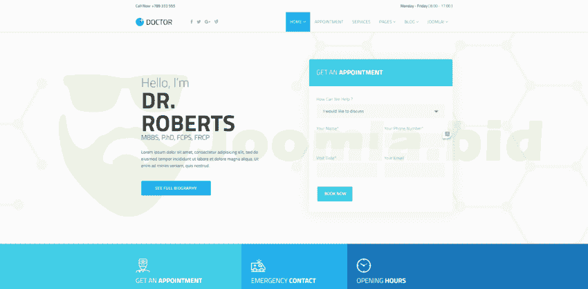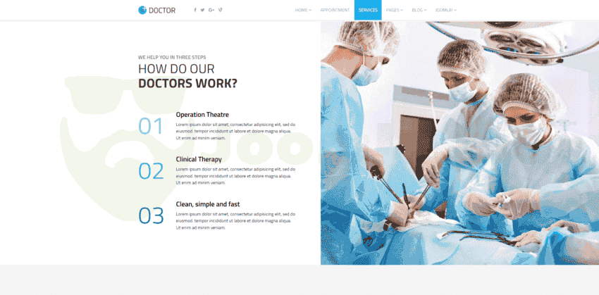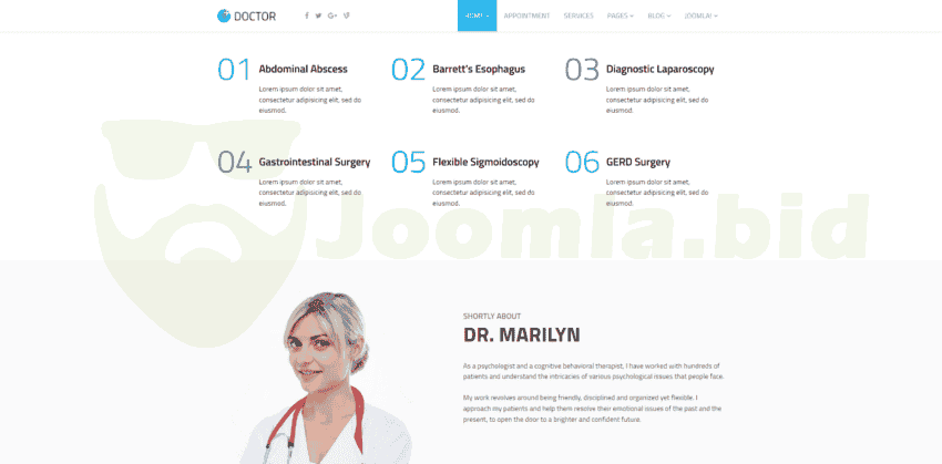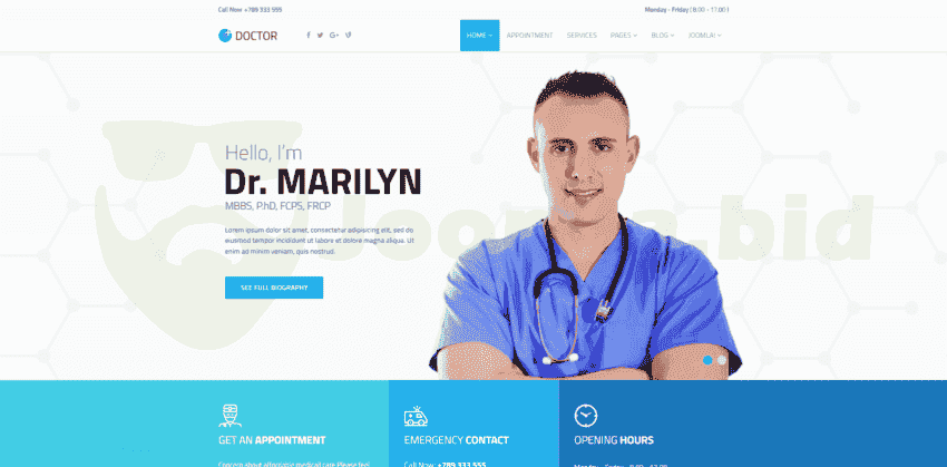 Doctor is a well-designed and fully responsive Joomla! 3.8+ template for surgeons, doctors, medical centers, dentist chambers, clinics, fitness & beauty centers, pharmacies, vets, small hospitals and other types of health-related websites. You can use it also as a vet theme. The template package includes new module SP Mednet Features, addons such as Appointment Form, Twitter feed display, Biography, Testimonial addon and much more.