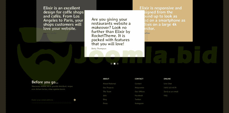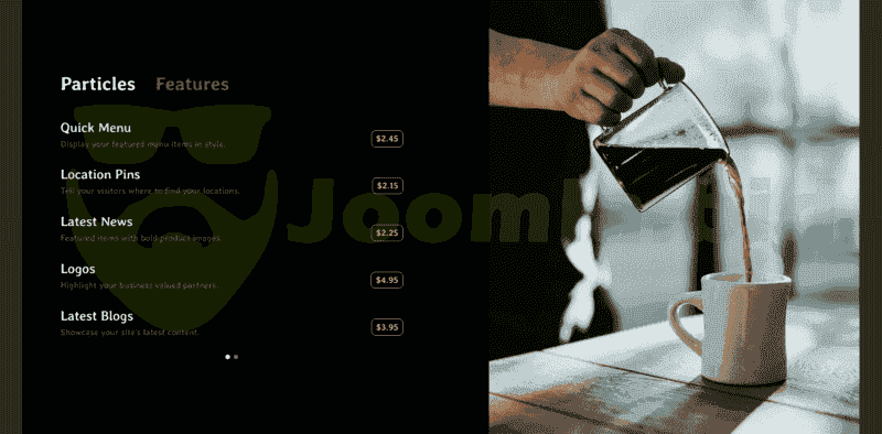 Elixir is a beautiful responsive theme built using a next-generation framework. It is packed with features and particles that are a perfect fit for cafés, coffee shops, pubs, pizzerias, burger joints, and more! Your customers will love it!