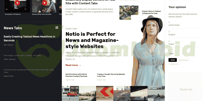 Accordion Article Tabs Authors List Cards Carousel Content Showcase Content Tabs Grid Content Grid Statistic Image Grid Joomla Articles Newsletter News Slider News Tabs Polldaddy Voting Pricing Table Simple Counter Simple Charts Video Video Carousel
