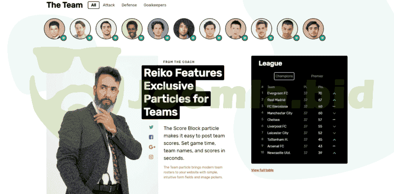 Reiko is the new sports-themed design from RocketTheme. Keep score with its exclusive scoreboard particle, build your team roster, and share news about your favorite sports. It will get you shouting GOOOOOOOOOAAALLL!!!