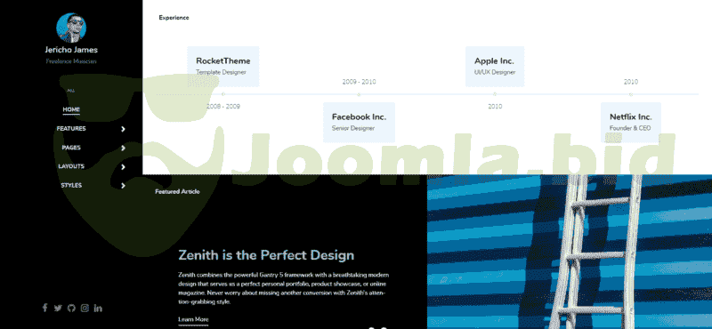 Zenith combines the powerful Gantry 5 framework with a breathtaking modern design that serves as a perfect personal portfolio, product showcase, or online magazine. Never worry about missing another conversion with Zenith’s attention-grabbing style.