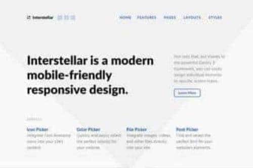 Interstellar features a clean, bold design featuring robust use of color, background elements, and a generous selection of unique particles that make creating your website a breeze, all configurable at the touch of a button.