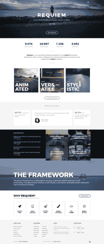 Requiem is an exquisitely designed template for the Gantry 5 template framework, offering a fixed side position, for the logo and other elements. Easy to style, configure and customize through an advanced, user friendly and modern interface.