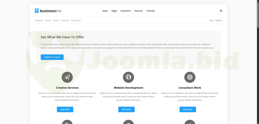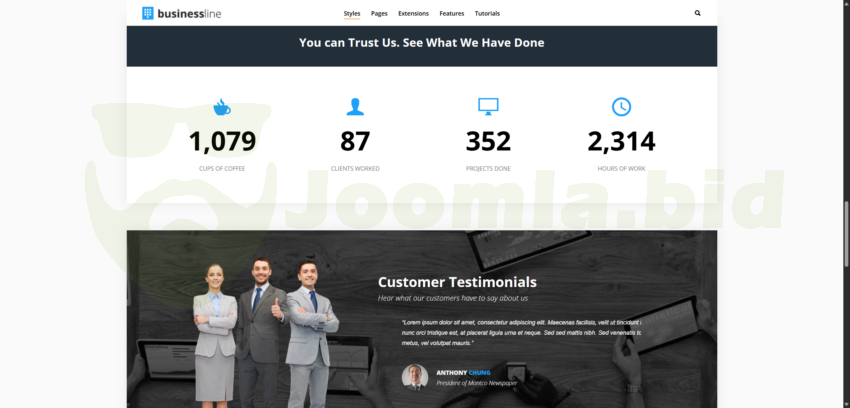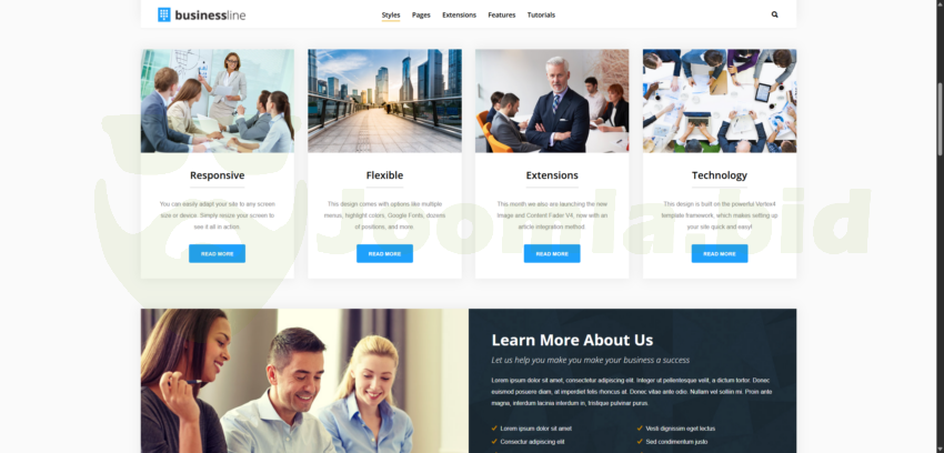 Template Business Line has the perfect combination of quality design and functionality. Using this layout, you will give your site more impressive. A wide range of settings, which gives a easy to manage admin panel that will allow you to configure all elements of the site according to your ideas and ideas. This layout will attract more users to your website and help to more effectively teach them what they need.