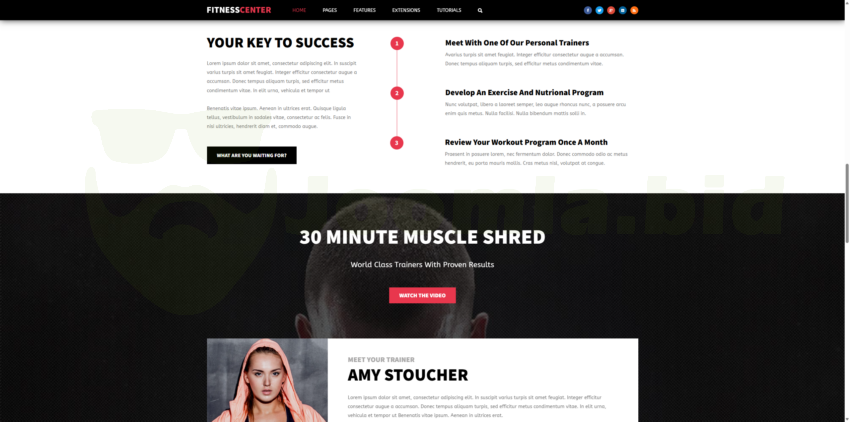 A combination of gray, black and red colors are a great informed decision, causing a surge of healthy athletic aggression! And I want to go to the gym and beat a punching bag. Or play with the bar! This is already what he studied. The design and color combination and clean lines is able to motivate and do something lighter, if You for example a girl;) Functionality in Joomla is not particularly provided, but it will not be required. You are already an existing solution. It remains only to fill the site with your content, and full speed ahead! And all the basic functions, of course included.