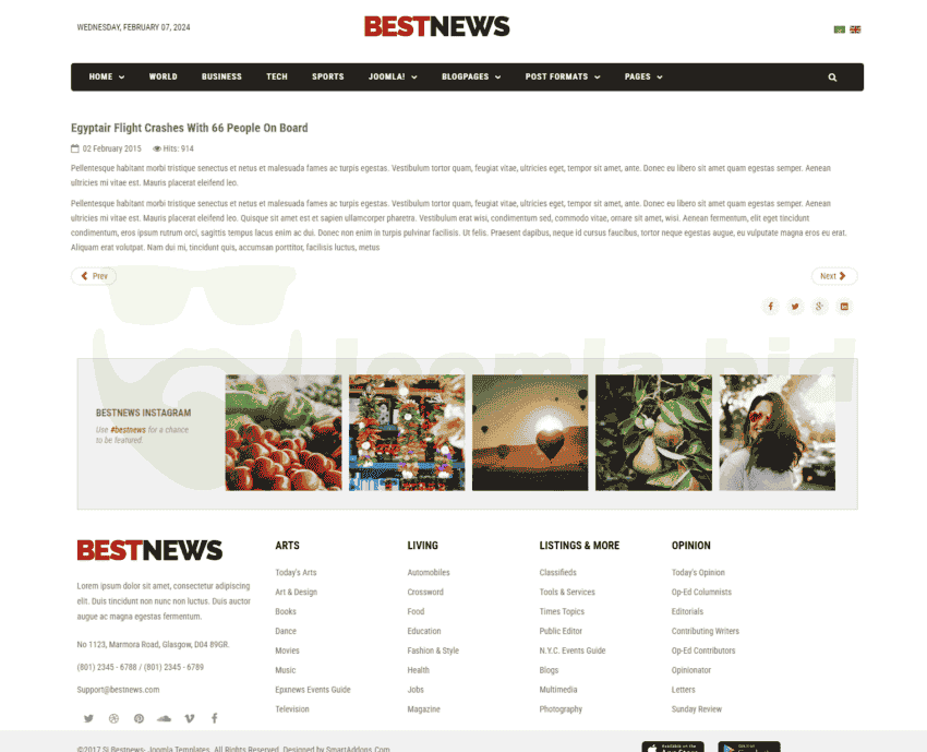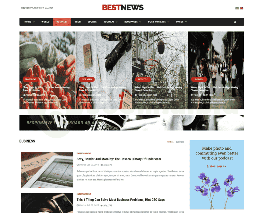 Sj BestNews is a modern, creative and professional news, magazine Joomla template which is powered by Helix 3 Framework. This responsive Joomla template comes with lots of real world features that you can get easy to use: Sp Page Builder (free), responsive design, 65+ useful shortcodes, powerful mega menu, RTL supported, sample data included and many more. The news portal Joomla responsive template has cross browser compatible and clean code. Get inspired in our demo – hope, you will enjoy it.