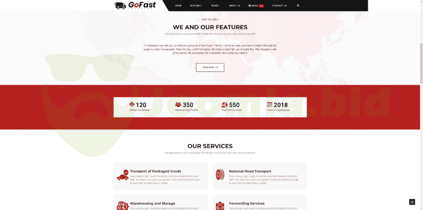 This logistics business Joomla template comes packed with easy-to-use drag and drop page builder (SP Page Builder Free Version) that allows you easily and quickly build and configure your website. Besides, Sj GoFast supports dozens of highly customized features like: powerful YT Shortcode with 65+ shortcodes, Helix Ultimate framework, RTL language support, sample data included and many more.
