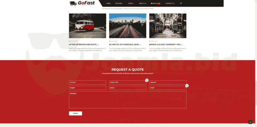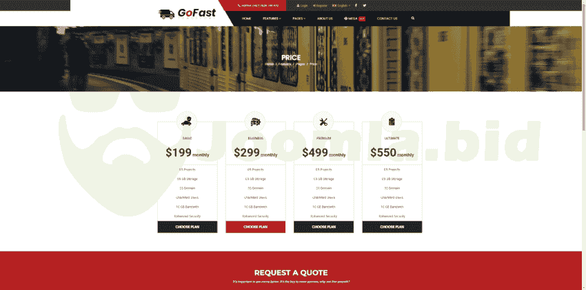 Sj GoFast is a professional Transport, Logistics Joomla template that designed for transportation business with modern layout and lots of advanced features. Sj GoFast comes with wide range of advanced features that will fit any transportation industry business. The transport Joomla template - Sj GoFast includes a awesome, professional homepage design specifically designed for transport, logistics or even warehouse websites. The Joomla template is fully responsive that makes it look beautiful at any screen resolution.