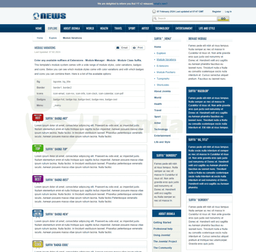 11. Support many extensions: SJ Basic News, SJ Facebook, SJ K2 Categories Accordion; Yt Plugin, SJ Core Plugin, SJ Content Related News; K2 component