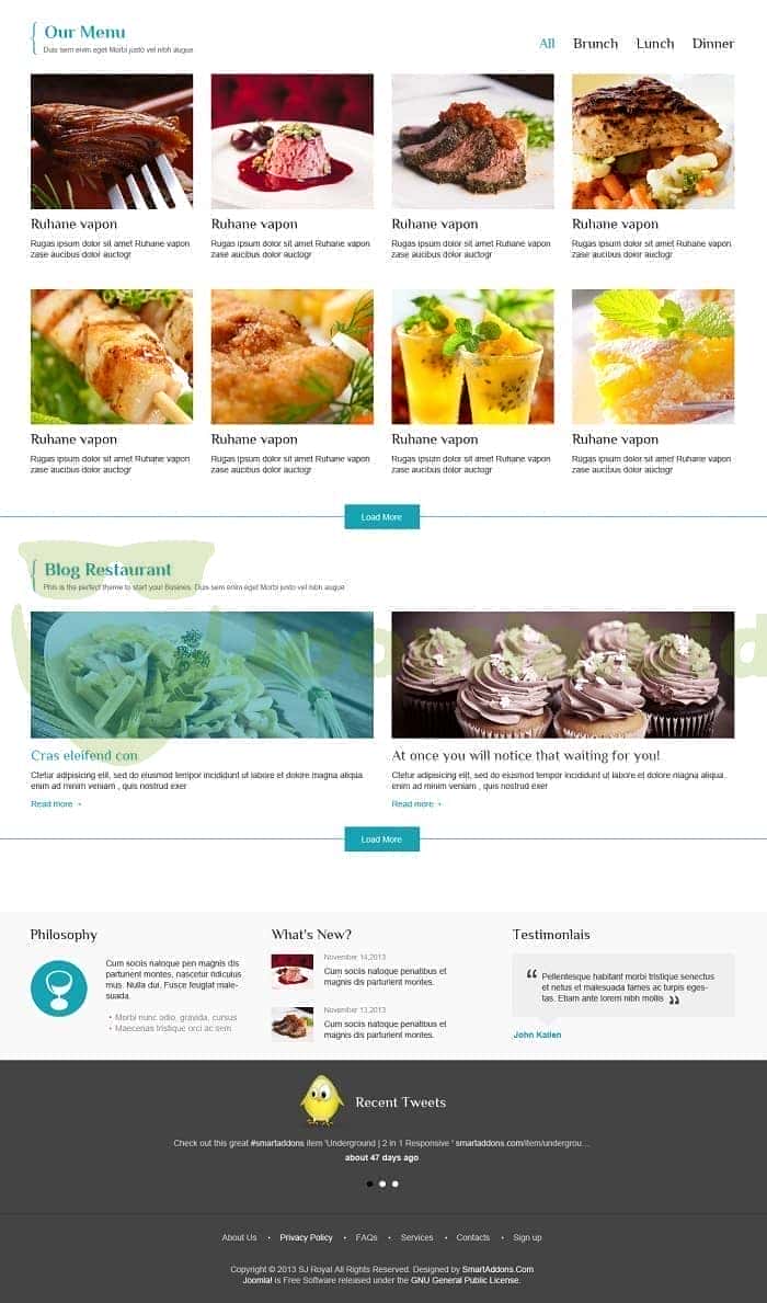 Sj Royal -An eye-catching travel Joomla Template that has been released for Joomla 5.x, 4.x and Joomla 3.x. It is a milestone template which definitely impresses you with a lot of wonderful features. SJ Royal is built with flat design, vibrant color schemes, neat typography and well-structured layout. In addition, your visitors will be engaged by the large image on the homepage. This restaurant Joomla template should be utilized for restaurant websites with online menu, other companies offering foods and drinks or introducing the company service…
