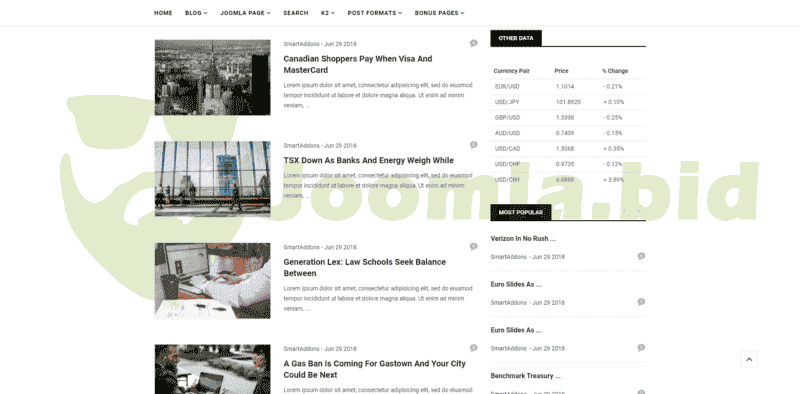 Sj MarketNews is a responsive premium Joomla template that built for financial sites: financial news, magazine, financial firms, business/corporate. The financial Joomla template is built with bundle of advanced features: Sp Page Builder (free), responsive design, 65+ useful shortcodes, powerful mega menu, RTL supported, sample data included and many more.