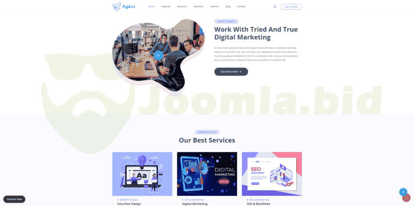 Sj Agenz is a trendy business agency Joomla template created for personal services to business professionals. This Joomla 5 template fits various ranges of business, agency and portfolio websites such as creative digital agencies, marketing & advertising services, website design, UX/UI Design, branding, photography, app development, digital business and many more. Sj Agenz Joomla agency template comes with a well-structured homepage, solutions, services, blog, about us, contact us... which adapt all your agency's requirements. The portfolio Joomla template is fully responsive design, it looks great on tablets and mobile devices. With high-quality code, detailed documentation and Full Quickstart Package included, you can quickly setup your website just in minutes without much coding knowledge.