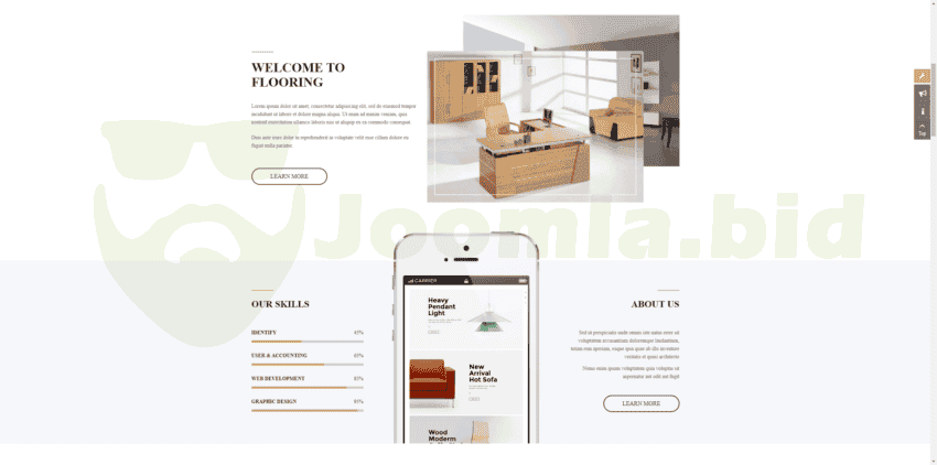 SJ Flooring is a responsive business Joomla template that is ideal solution for any interior or materials website. It works well for creating a better navigation and neatly organized content structure of a interior or materials webiste. With clean and styled design, this interior Joomla template will make your site brighter, more attractive and help your sales volume up. SJ Flooring furniture Joomla template is built on YT Framework V3 and Acymailing component which gives it a flexible of using as well as customizing. Besides, the template comes packed with dozens of advanced in-house modules intuitive features: 2 responsive homepages with 4 styles of layout: Boxed, Wide, Framed, Rounded; 5 Beautiful Colors for Interior-Styles, powerful mega menu, more 65+ useful shortcodes, etc.