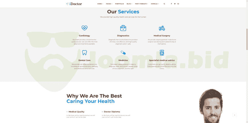 Sj iDoctor is a professional responsive 3.7 Joomla template designed for doctors, medical, healthcare centers, clinics, small hospitals and other types of health-related websites with 2 elegant homepage layouts. The medical Joomla template comes with an outstanding design and lots of elements and features specially created for medical and heath-related sites, such as doctor info, medical services, appointment form, health service packages, mapping and much more.