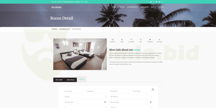 BookMe Booking Hotel-Motel-Villa Joomla 5 Template is made with latest Helix Ultimate 2 framework and SP Page Builder 5, one of the best page builder extension for Joomla. BookMe Template offer you great booking form generator where you can easily add more fields or to edit those tat are added. This template is made for hotel, motel, villa and other kind of services that need an website fast, clean easy to make it and with great booking extension form.