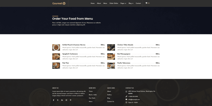 Gourmets template is made with SP Page Builder extension and is the best page builder for Joomla. You can edit very easy all parts from website using frontview or backend.